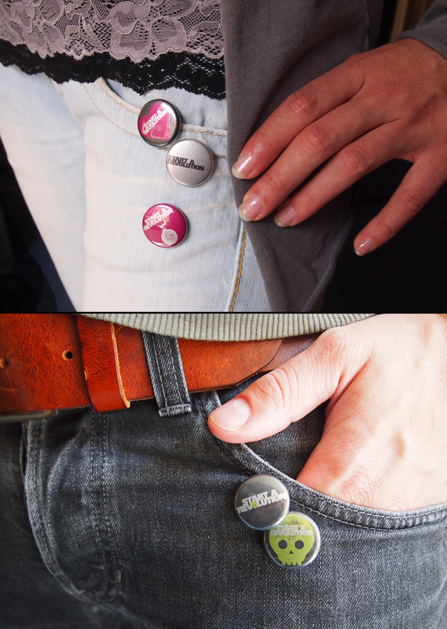 6. Juli 2013Nächste Woche haben wir ein paar neue Schönheiten im Haus. Die könen euch gehören, sie verzieren wunderbar eure Hoodies, Beanies und Rucksäcke! Buttons gibt’s mit silbernem und weißem Untergrund (oben seht ihr silber). Bekommen könnt ihr sie hier.